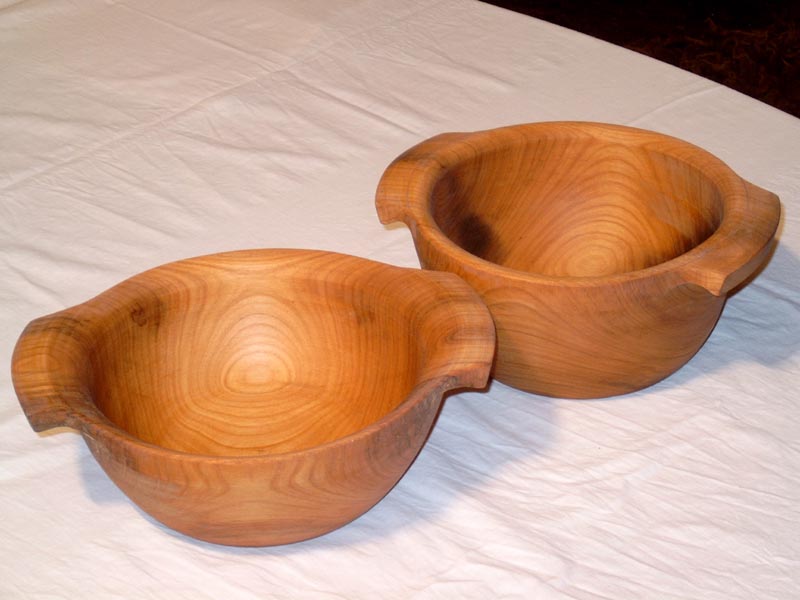 Für das Holz gilt das zuvor Beschriebene, jedoch kommen die Holzarten Zeder, Lärche, Esche, Roterle und Eiche hinzu. Die Pappelschalen sind feucht gedreht und trocknen erst hinterher. Dadurch verformen sie sich etwas, sodass sie nicht mehr ganz rund sondern von Stück zu Stück eigenwillig geformt sind. Ehemalig „Äste“ oder andere Problemstellen werden bewusst gesucht und ergeben interessante Oberflächeneffekte.